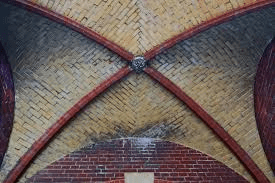 Een kruisgewelf zien we in het plafond van de universiteitshal.