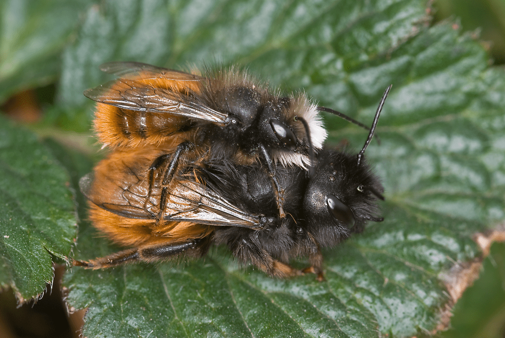 De gehoornde metselbij is één van de eerste wilde bijen van het jaar. grootte: 11-15 mm kleur: zwart behaarde kop en borststuk, met een opvallend (volledig) ros achterlijf. De vrouwtjes hebben rosse beharing op de buik, hoorntjes op de kop en geen witte ‘baard’.
